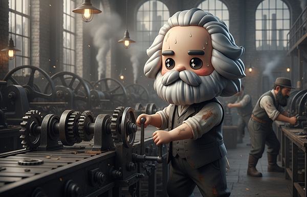 Philosophe et économiste allemand. Il analyse le travail sous le capitalisme comme une aliénation. L'ouvrier est dépossédé du produit de son travail, de l'acte de production, et finalement de son essence humaine (Gattungswesen). Le travail devient une simple marchandise.